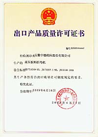 中德公司獲得出口產品質量許可證書