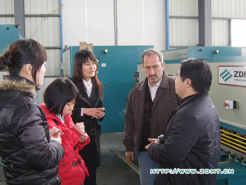 Haiyl A.AI Rawy先生對(duì)中國機(jī)械行業(yè)尤其是剪板機(jī)折彎?rùn)C(jī)非常的熟悉,他表示他們非常重視機(jī)器的質(zhì)量,來中德也是由于中德機(jī)器在海內(nèi)外都享有良好的聲譽(yù)。參觀前,Haiyl A.AI Rawy還特意詢問我們?cè)诎⒙?lián)酋有沒有代理,當(dāng)公司領(lǐng)導(dǎo)回答說目前還沒有時(shí),他釋然一笑,表示希望能夠與中德建立良好的合作關(guān)系。在中德的成品車間,Haiyl A.AI Rawy先生聽取了我公司營狀況及近遠(yuǎn)期規(guī)劃的介紹,并就每一款機(jī)床的詳細(xì)情況進(jìn)行了介紹,重點(diǎn)詢問了其性能及售價(jià)等。他對(duì)我們的數(shù)控折彎?rùn)C(jī)尤其感興趣,要求當(dāng)場(chǎng)進(jìn)行測(cè)試。Haiyl A.AI Rawy特意讓自己的助理拍下了整個(gè)操作過程,在我公司工程師的幫助下,Haiyl A.AI Rawy還進(jìn)一步了解了折彎?rùn)C(jī)數(shù)控系統(tǒng)的編程方面的問題。