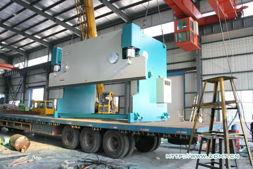 由于機(jī)器體積較大,高度超過(guò)3.5米,重量在50噸以上,所以采用了分體式運(yùn)輸,工作臺(tái)與機(jī)器主體分離開(kāi)來(lái)。這種大型機(jī)床由于其體積與重量的關(guān)系,并不是很常見(jiàn),需求量相對(duì)來(lái)講少點(diǎn),而對(duì)制造商的要求也相對(duì)比較高,其中無(wú)不體現(xiàn)中德產(chǎn)品在客戶心目中認(rèn)可度!